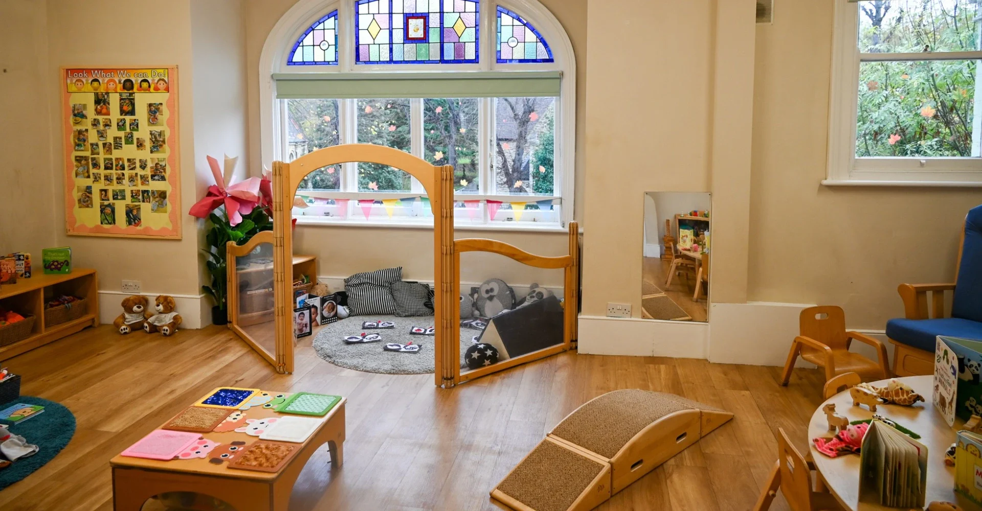 Our nursery features four dedicated rooms tailored to different age groups, allowing children to develop in an environment catered to their specific needs. Our practitioners follow the Early Years Foundation Stage (EYFS) framework, providing a rich and balanced curriculum that nurtures curiosity, independence and confidence.